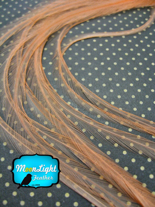 10 Pieces - Solid Cantaloupe Thin Long Rooster Hair Extension Feathers