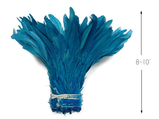 2.5 Inch Strip - Turquoise Blue Strung Bleach & Dyed Rooster Coque Tails Feathers