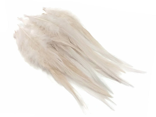 1 Dozen - Short Solid Ivory Whiting Farm Rooster Saddle Hair Extension Feathers