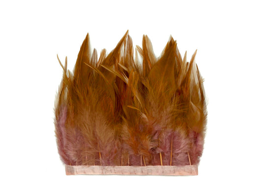 1 Yard - Dyed Taupe Over Natural Rooster Neck Hackle Saddle Feather Wholesale Trim