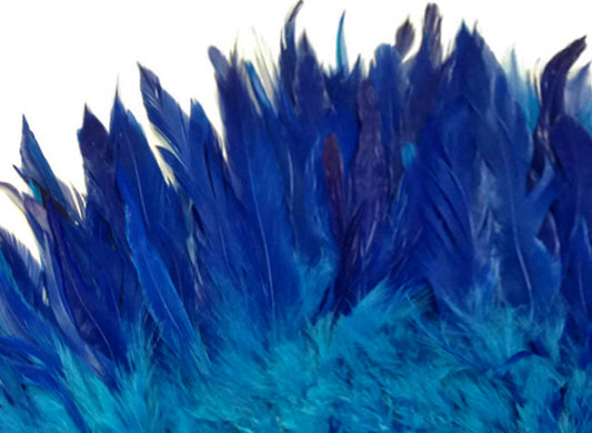 2 Inch Strip - Blue Two Tone Bleached & Dyed Strung Rooster Schlappen Feathers
