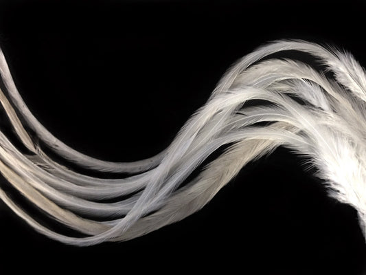 6 Pieces - Solid Ivory Thick Long Rooster Hair Extension Feathers