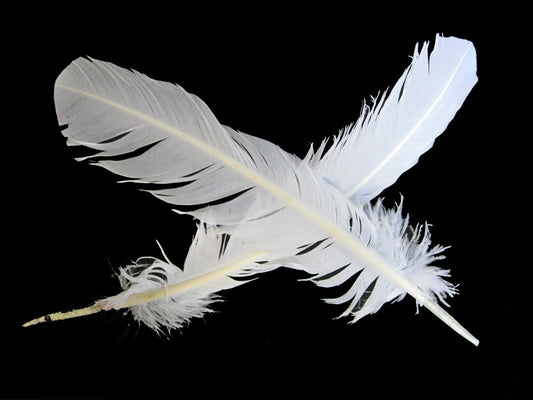 1 Lb - White Turkey Tom Rounds Secondary Wing Quill Wholesale Feathers (Bulk)