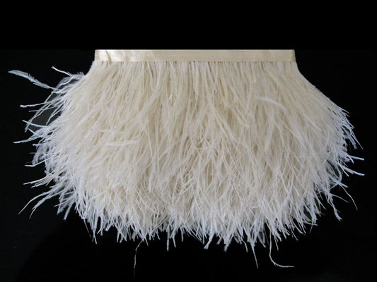 6 Inch Strip - Ivory Ostrich Fringe Trim Feather