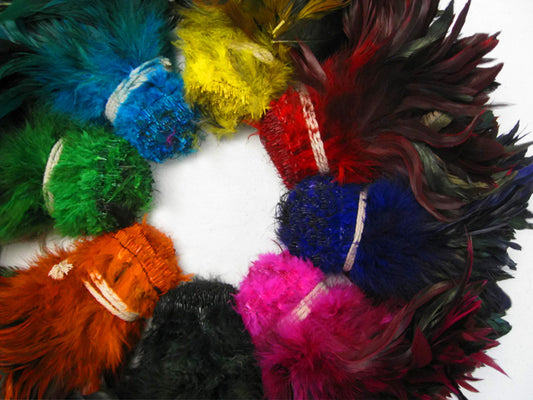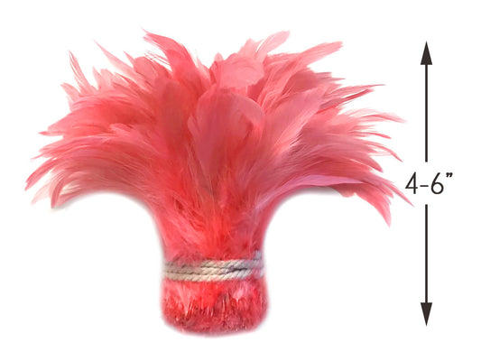 4 Inch Strip - Coral Bleached & Dyed Strung Rooster Schlappen Feathers