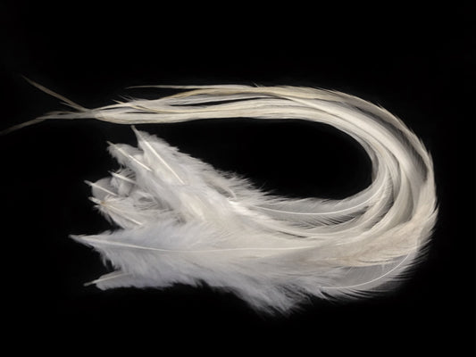 6 Pieces - XL Solid Ivory Thick Rooster Hair Extension Feathers