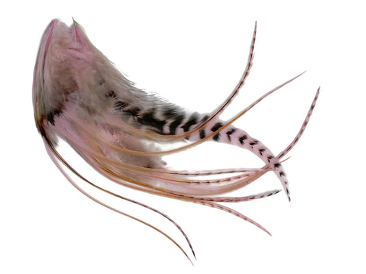 1 Dozen - Medium Pinkle Blendz Grizzly Rooster Saddle Whiting Hair Extension Feathers