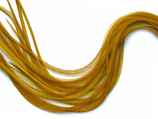 10 Pieces - Yellow Badger Thin Long Whiting Farm Rooster Hair Extension Feathers