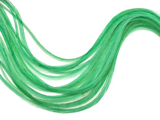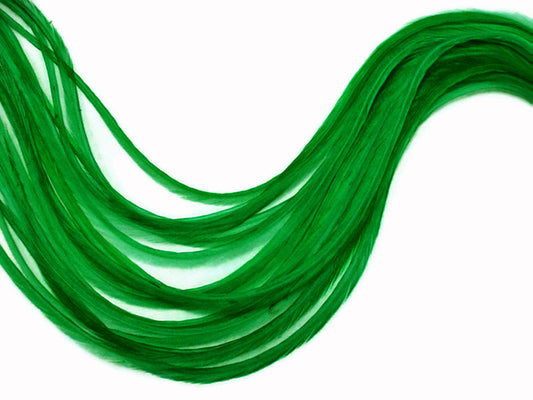 10 Pieces - Solid Kelly Green Thin Long Rooster Hair Extension Feathers