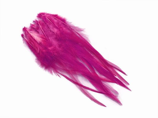 10 Pieces - Solid Hot Pink Thin Long Rooster Hackle Hair Extension Feathers