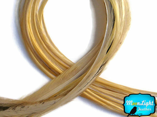 10 Pieces - Light Honey Ginger Thin Long Rooster Hair Extension Feathers