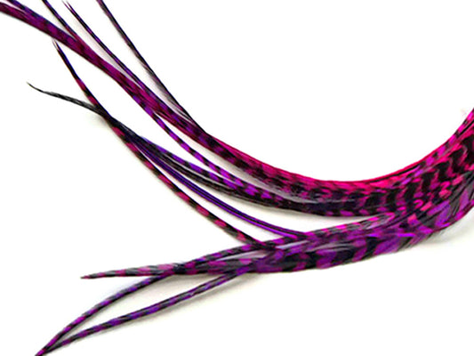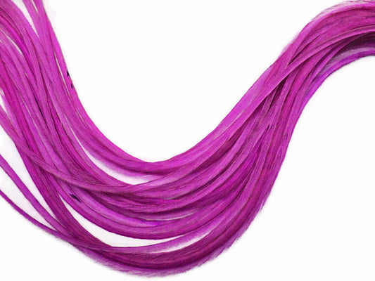 10 Pieces - Magenta Thin Long Grizzly Whiting Farm Rooster Saddle Hair Extension Feathers