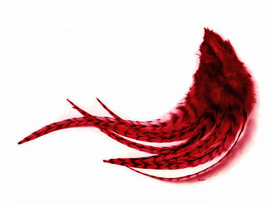 4 Pieces - Red Thin Long Grizzly Whiting Farm Rooster Hair Extension Feathers