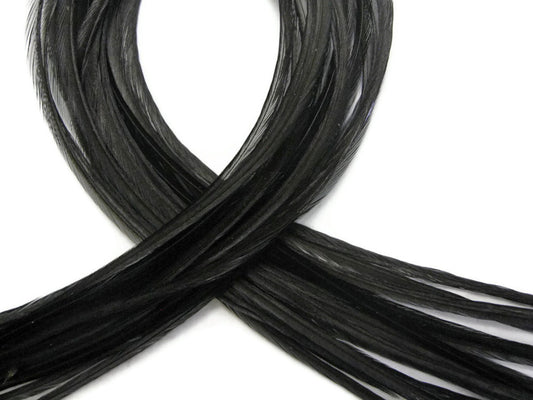 10 Pieces - Solid Black Thin Long Rooster Hair Extension Feathers