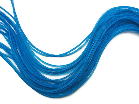 10 Pieces - Solid Turquoise Blue Thin Long Whiting Farm Rooster Hair Extension Feathers