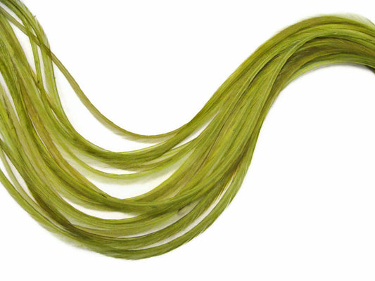 10 Pieces - Solid Olive Thin Long Rooster Hair Extension Feathers