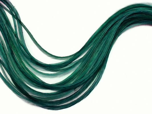 10 Pieces - Solid Peacock Green Thin Long Rooster Hair Extension Feathers