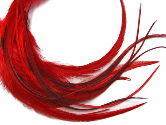10 Pieces - Red Thin Long Grizzly Rooster Hair Extension Feathers