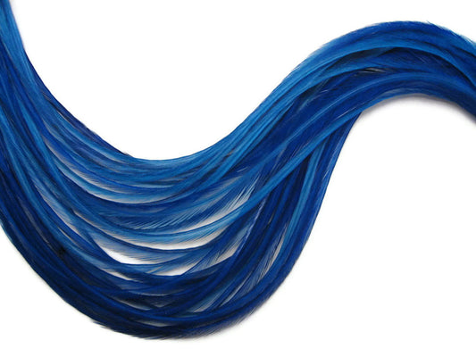 10 Pieces - Royal Blue Thin Long Grizzly Whiting Farm Rooster Saddle Hair Extension Feathers