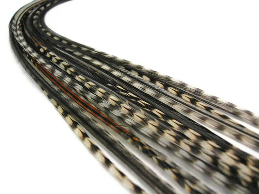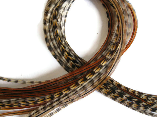 10 Pieces - Mocha Thin Long Grizzly Rooster Hair Extension Feathers