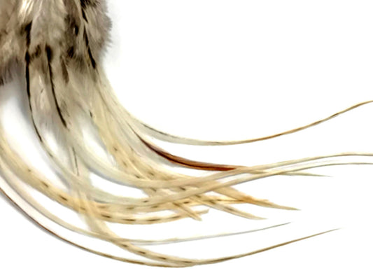10 Pieces - Tan Thin Long Grizzly Rooster Hair Extension Feathers