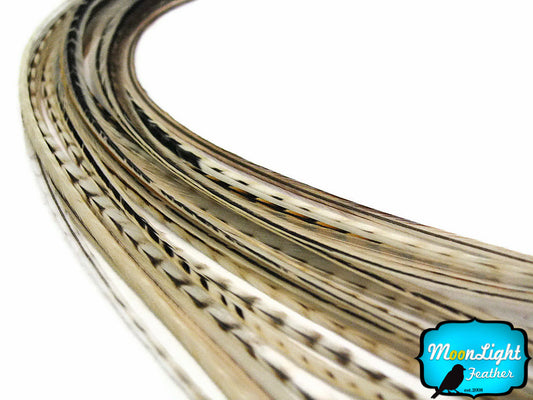 1 Dozen - Medium Natural Grizzly Rooster Saddle Whiting Hair Extension Feathers