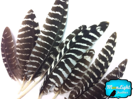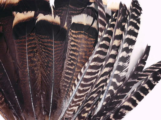 50 Pieces - Natural Barred Wild Turkey Merriam Primary Wing Pointer Quill Wholesale Feathers (bulk)