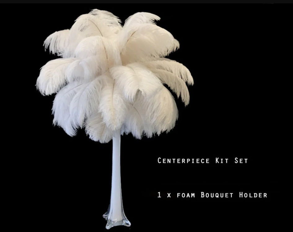 This is a great budget-friendly option for making ostrich feather centerpieces. The kit includes 30 14-17" off-white ostrich feathers and a bouquet holder. Finish the look by adding your own vase.