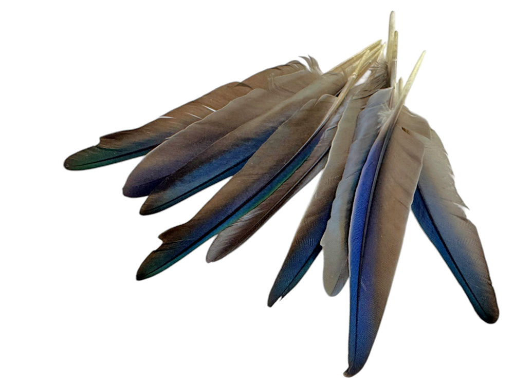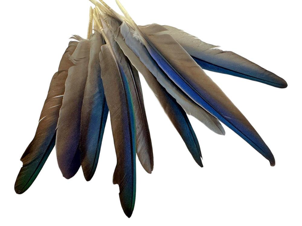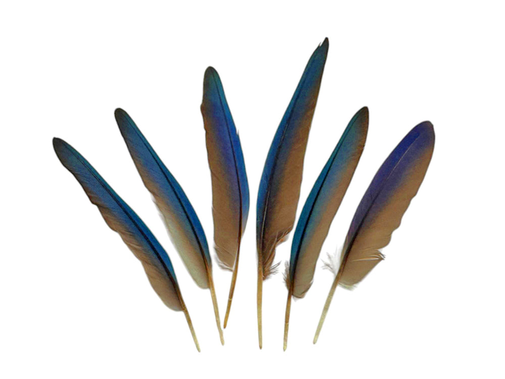 These macaw secondary wing feathers are very popular in making jewelry and other accessories. You can use these feathers for all crafting purposes including smudging stick, Indian headdress, dream catcher, costume, fly tying, quill pen and so much more.
