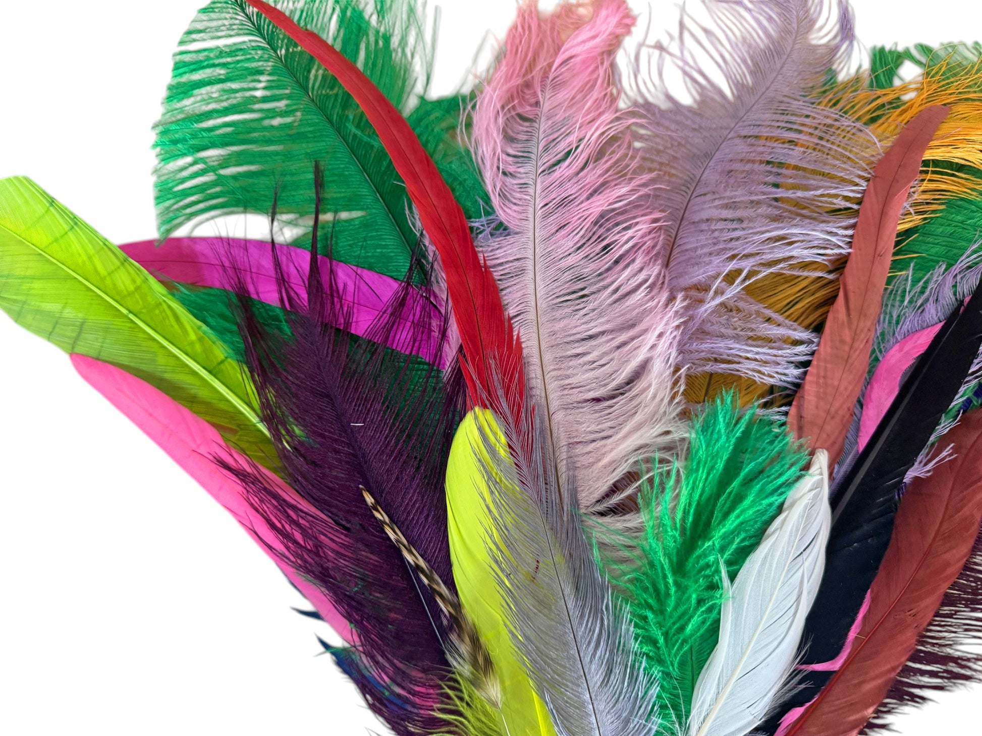 Totally random feather mix pack. Every Pack is unique and you get what you see. You will get feathers you see in the picture and much more! Each pack is different so don't miss out!