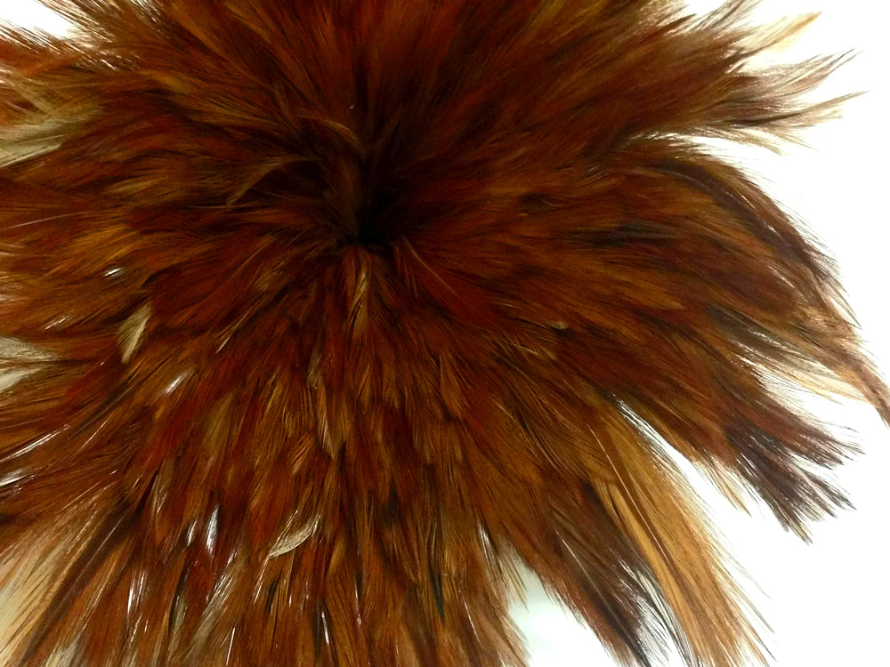 1 Yard - Natural Red Strung Rooster Neck Hackle Wholesale Feathers (Bulk)