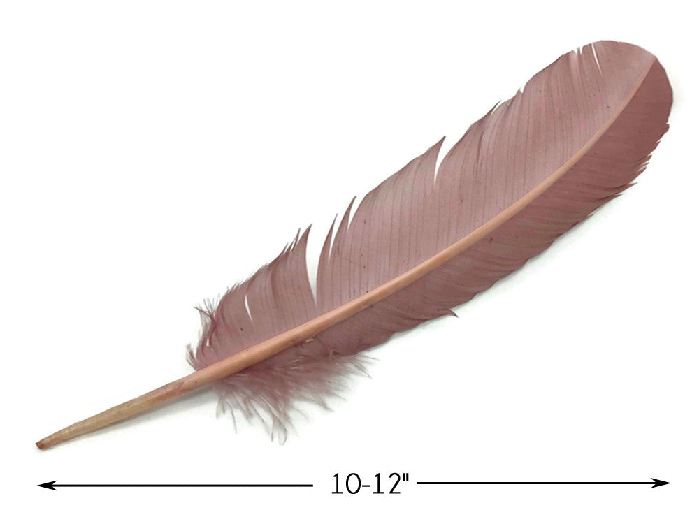 This listing is for 1 lb. of taupe turkey round quills wing feathers and are approximately 10-12 inches in length and 1-1/2 to 2 inches wide. There are approximately 200 feathers in this bag of 1 lb. There will be half left and half right wing feathers in this pack but they might not be the exact amount as they are not pack by count. One side might be higher count than the other side.