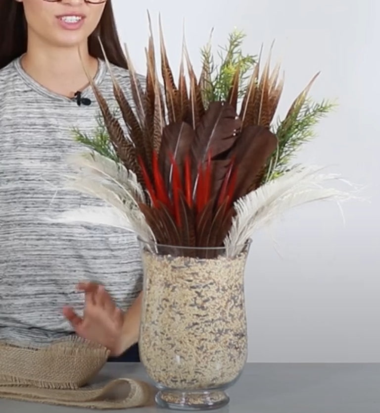 Make this beautiful centerpiece. This kit includes the feathers from the video with the exception of the red tips which are no longer available. Feathers only. Add your own vase, bird see and burlap to complete the look.