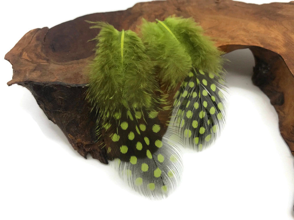 1 Pack - Olive Green Guinea Hen Polka Dot Plumage Feathers 0.10 Oz.