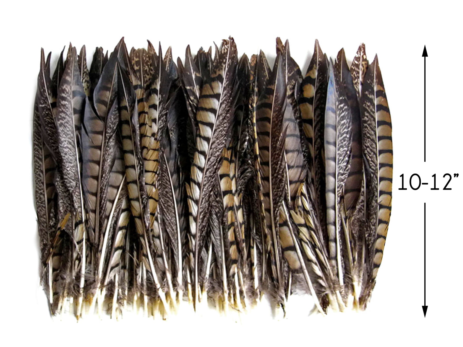 10 Pieces - 10-12" Natural Striped Lady Amherst Pheasant Tail Feathers