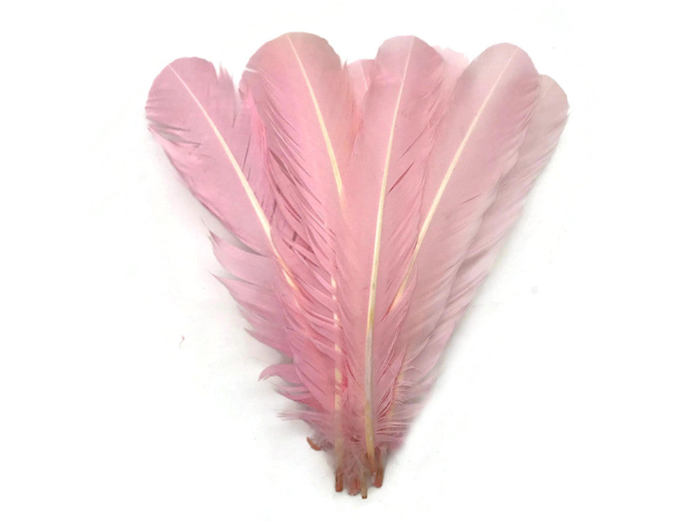 6 Pieces - Light Pink Turkey Rounds Secondary Wing Quill Feathers