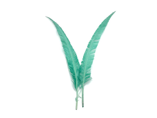 10 Pieces – Solid Aqua Mint Thin Long Whiting Farm Rooster Hair Extension Feathers