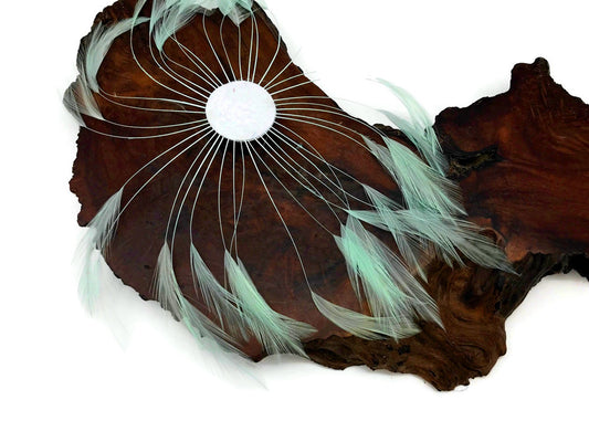 1 Piece - Mint Green Whole Beaded Pinwheel Stripped Rooster Hackle Feather Plates