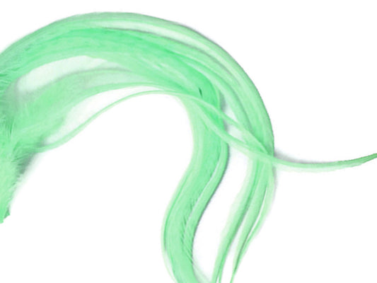 10 Pieces - Mint Green Thin Long Grizzly Rooster Hair Extension Feathers