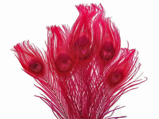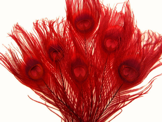 50 Pieces - 30-35" Red Bleached & Dyed Peacock Tail Eye Wholesale Feathers (Bulk)