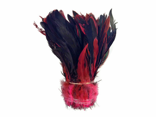 2.5 Inch Strip - 14-16" Black Strung Natural Bleach & Dyed Coque Tails Feathers
