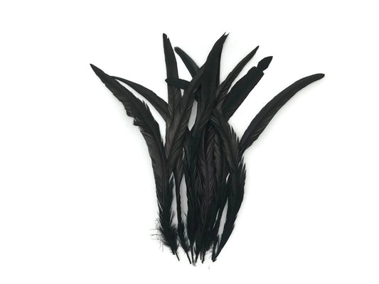 1/2 Yard - 8-10" Black Strung Natural Bleach & Dyed Rooster Coque Tail Wholesale Feathers (Bulk)
