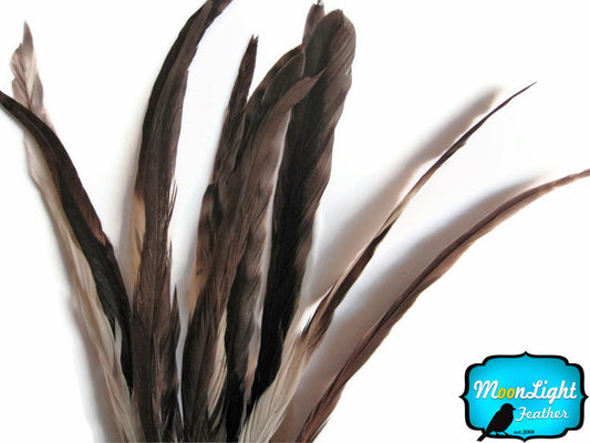 10 Pieces - 16-18" Natural Black Half Bronze Coque Tail Strung Feathers