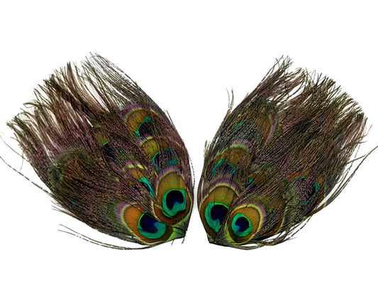 1 Piece - Natural Trimmed Small Eye Iridescent Green Peacock Feather Pad