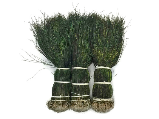 3 Inch Strip - 5-7" Natural Iridescent Green Peacock Flue / Herl Strung Feathers