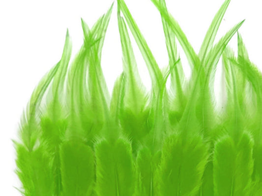 1 Dozen - Short Lime Green Grizzly Rooster Saddle Feathers