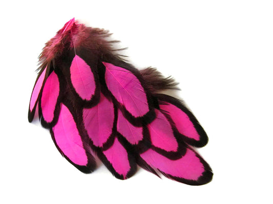 1 Dozen - Hot Pink Whiting Farms Laced Hen Saddle Feathers