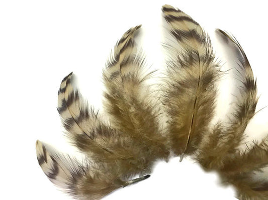 10 Pieces - Tan Dyed Grizzly Hen Saddle Feather