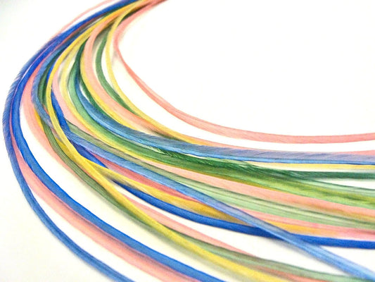 8 Strands - Pastel Mix Thin Long Rooster Hair Extension Feathers