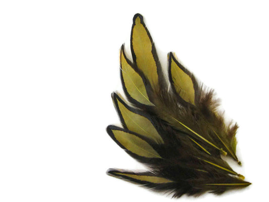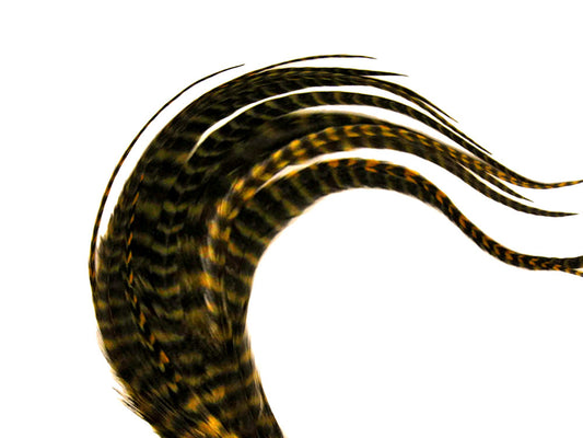 10 Pieces - Golden Olive Thin Long Grizzly Rooster Hair Extension Feathers